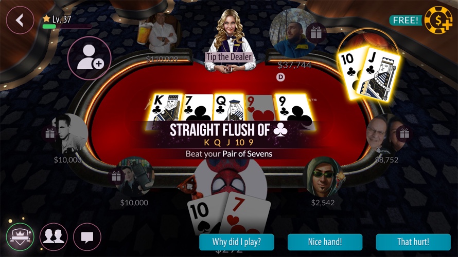 This improvement was aimed at newer players. It can often be difficult to know what type of hand the winning hand actually was. By providing an easily digestable, verbose callout, it because clear very quickly what the winning hand was.